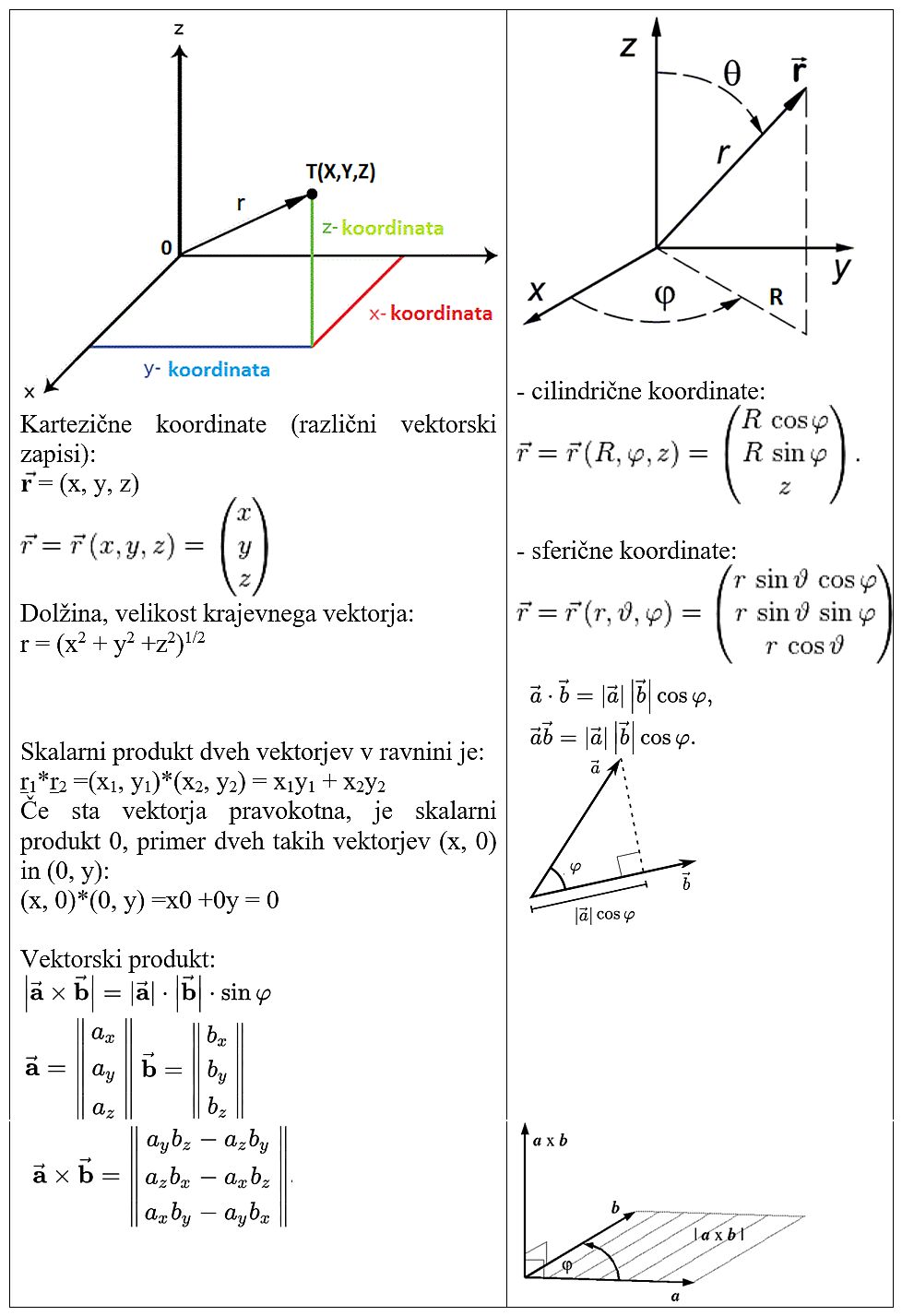 Kartezične koordinate (različni vektorski zapisi, ko gre za vektorski račun, bo