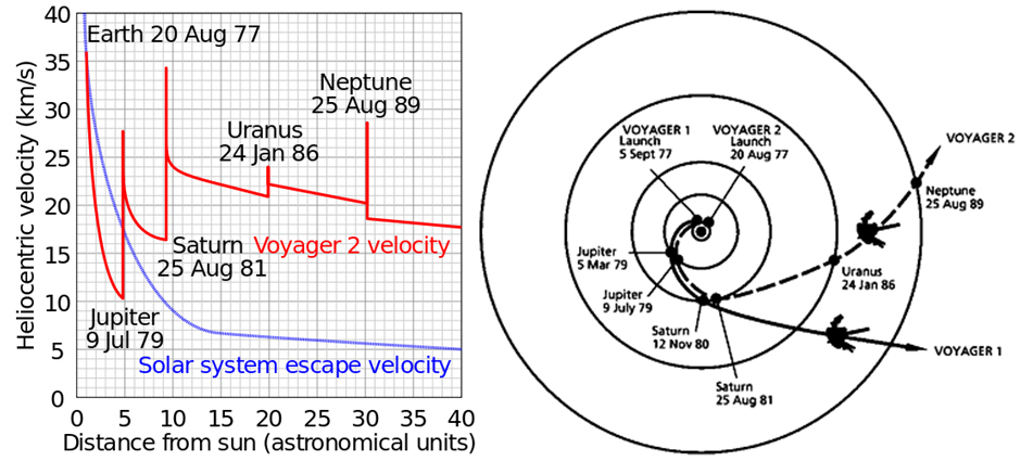 na začetku nekoliko manjše hitrosti, saj sta obiskovale planete, ki so jima