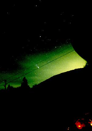 s širokokotnim objektivom (g. razdalja: 20 mm). Fotoaparat je bil pritrjen na teleskop MEADE LX200. Posneto 29. marca 1996 na diafilm Fujichrome 400 ASA, čas: 2 min. Tisto, kar preseneča, je vidnost repa skozi tančico oblakov, obsijano z Luno in svetlobo iz Ljubljane. Posnetek je nastal na Rakitni ob drugi uri zjutraj, temperatura zraka je bila blizu minus 10 stopinj. Posnela Zorko Vičar in Urban Vehovar.