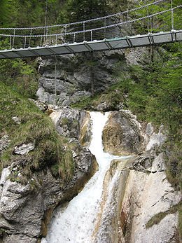 šum (Tschaukofall, 720 m nm), kjer se nahajata t.i. »Hudičeva mostova«.