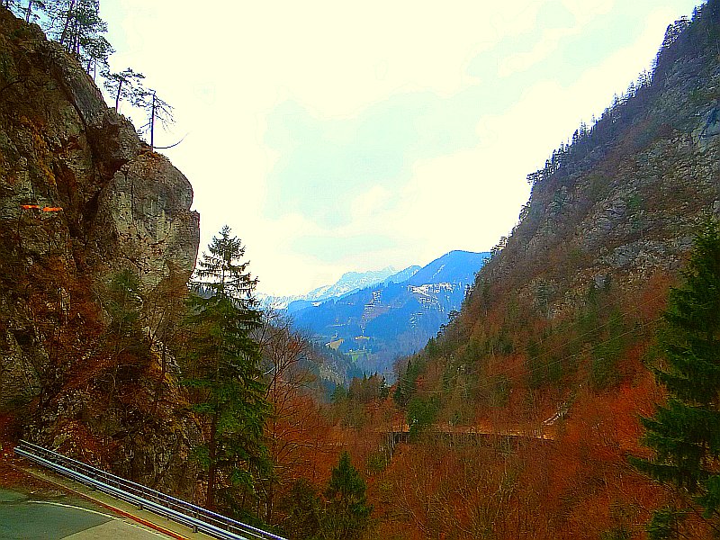 Na celovški strani Kravank je v gore vrezana izjemno lepa in slikovita