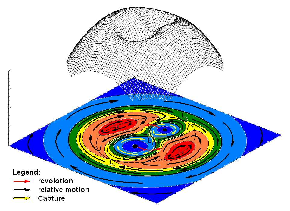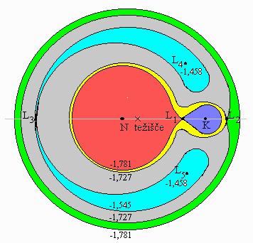 Lagrangeve točke L1 (leži na zožitvi toka plazme) pretaka na bližnjo