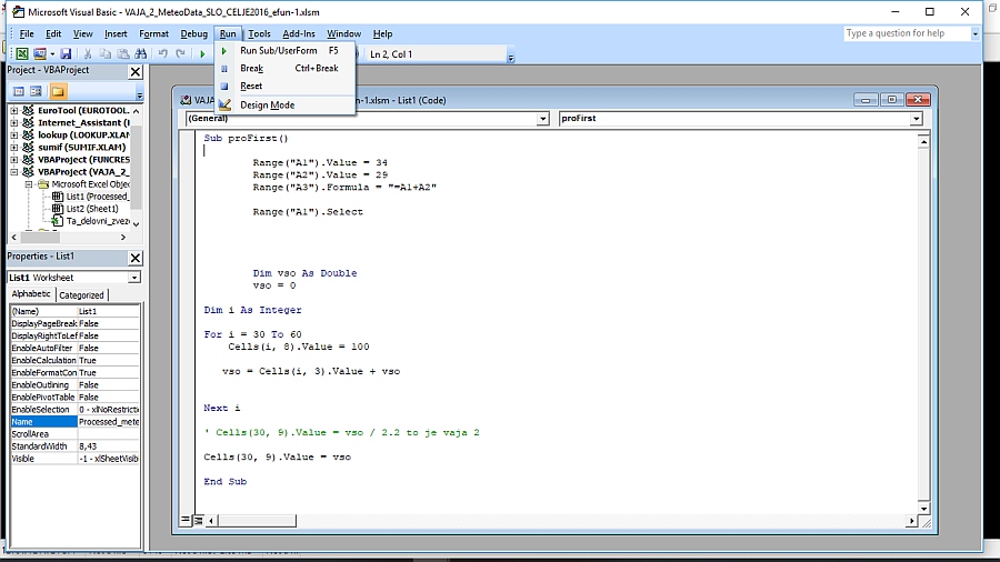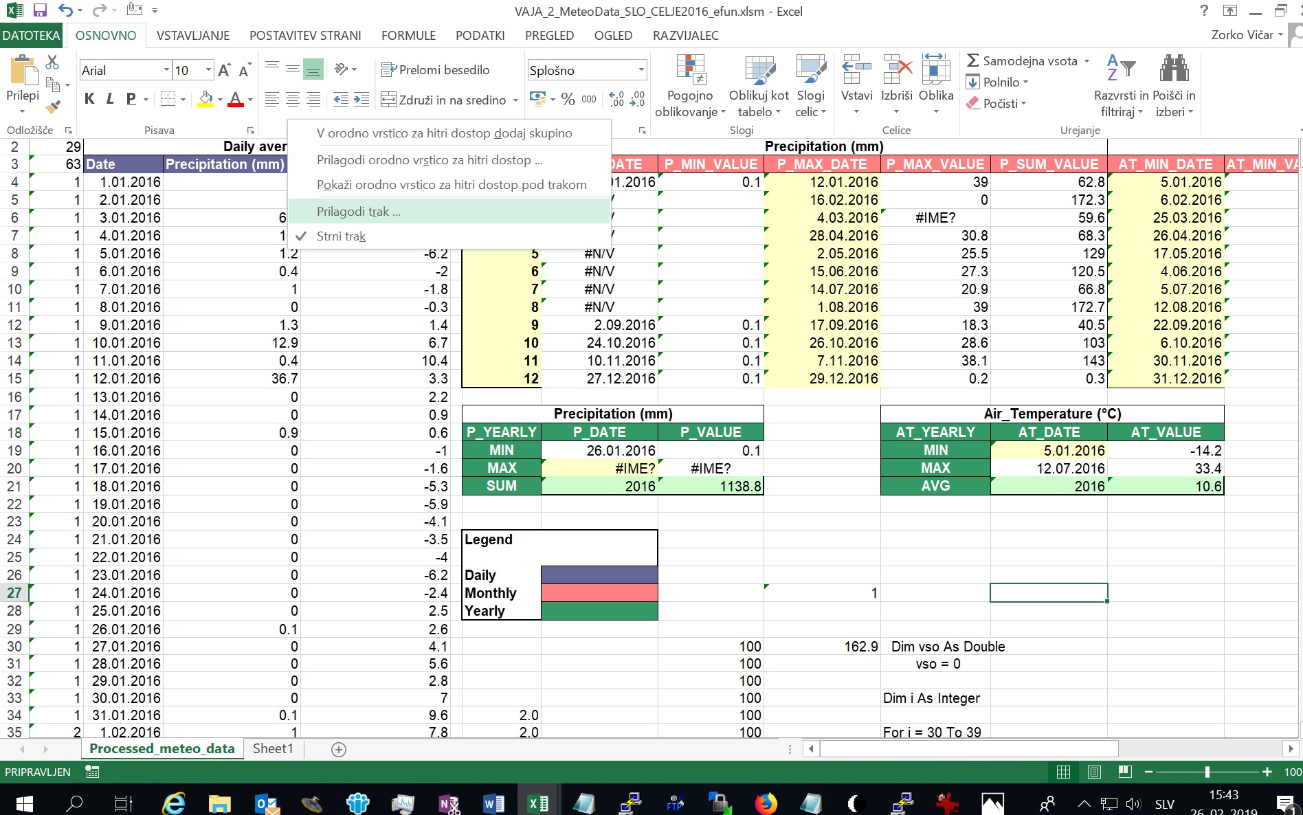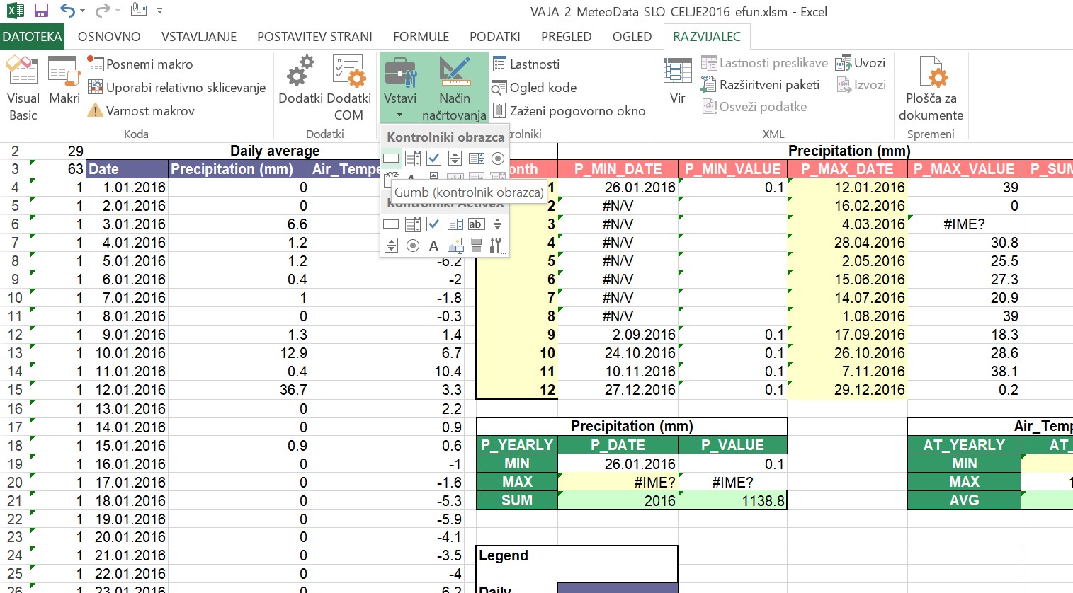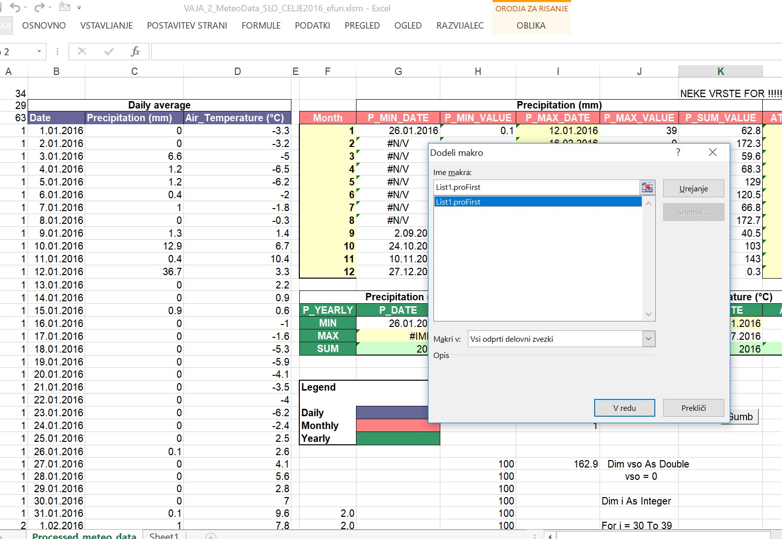 Če še nimate vključenega orodja "Data Analysis (Analiza podatkov) pod Data (Podatki) - v orodni vrstici bolj na desni ... ",