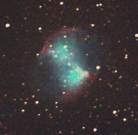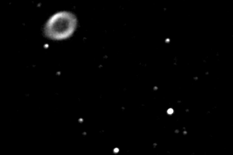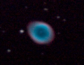posneta v gorišču teleskopa MEADE LX200, D=25,4 cm, f/10, na diafilm Kodak T800/1600, razvit na 1600 ASA. Datum: avgust 1995; čas: 20 min. Meglica se nahaja v ozvezdju Lire in je 1400 sv.l. daleč. Je ena najlepših na nebu. Ker je devete magnitude, jo lahko vidimo samo z boljšimi daljnogledi. Posnela Gašper Šušteršič in Damjan Šterk.