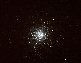 posneta v gorišču teleskopa MEADE LX200, D=25,4 cm, f/10, na diafilm Kodak T800/1600, razvit na 1600 ASA. Datum: avgust 1995; čas: 15 min. Kopica se nahaja v Herkulu med zvezdama eta in zeta, vidna že z daljnogledom. Oddaljena je okrog 26700 sv.l., sestavlja jo nekaj 100000 tisoč zvezd, njen premer pa je približno sto sv.l.. Proti kopici M13 so leta 1974 poslali po radioteleskopu v Arecibu sporočilo, ki bi ga lahko sprejela in razvozlala tamkajšnja morebitna misleča bitja. Posnela Gašper Šušteršič in Damjan Šterk.