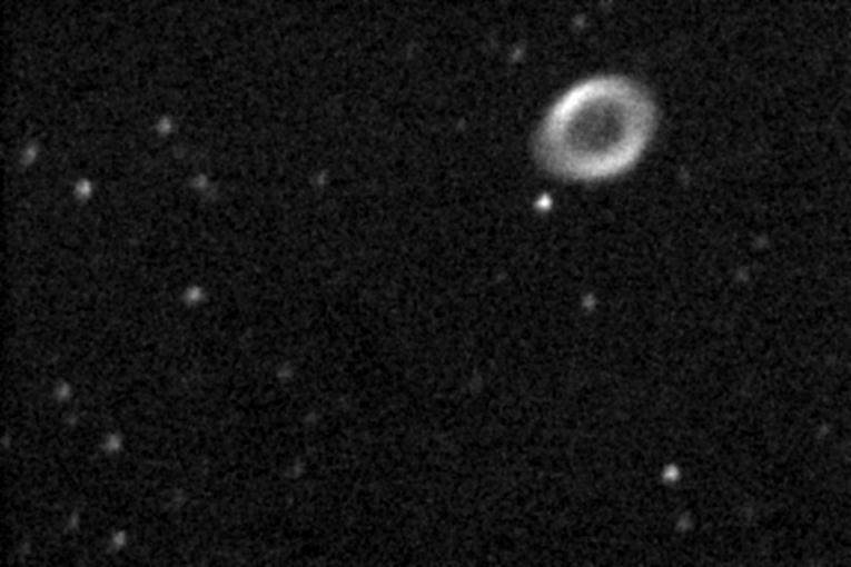 posneta v gorišču teleskopa MEADE LX200, D=25,4 cm, f/10, digitalni fotoaparat Canon EOS 350 D. Čas: 1 min, datum: 18.8.2006, 1600 ISO; posnel Klemen Blokar. Vidna je centralna zvezda.