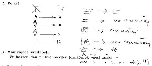 | Če so bili v danem dnevu opaženi pojavi: | ||