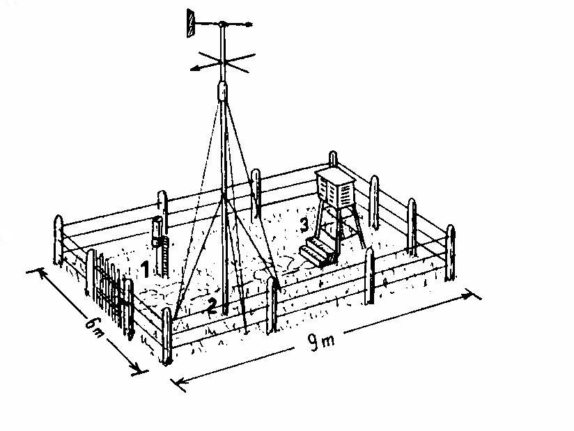 Slika 2. Razporeditev inštrumentov na opazovalnem prostoru navadne meteorološke postaje