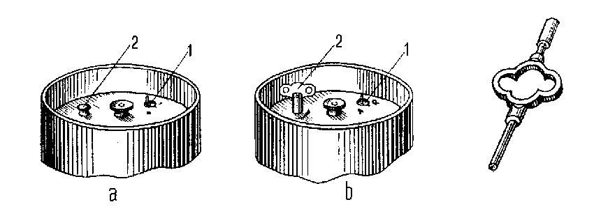 Za navijanje urnega mehanizma uporabljamo poseben ključ. Pri nekaterih valjih je ključ vedno v mehanizmu (2 na sl. 6b), pri drugih pa le pri navijanju (sl. 6c). Pri teh zapremo odprtino za navijanje urnega mehanizma s posebnim pokrovčkom. Ključ obračamo narahlo do konca v smeri puščice, ki je vgravirana poleg odprtine, z drugo pa držimo valj, da se ne obrača.