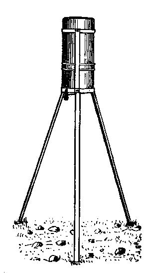 Na glavnih meteoroloških postajah, kjer merimo tudi druge meteorološke elemente, postavimo ombrometer na opazovalnem prostoru, kot kaže sl. 1.