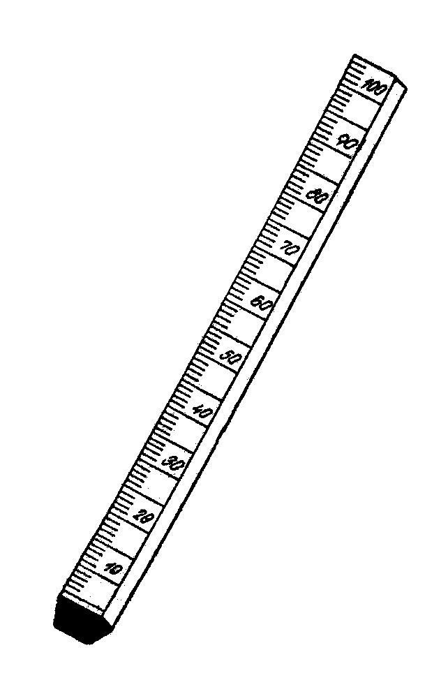 Če je sneg pri letvi staljen ali je tam zaradi vetra nižji ali višji, se ravnamo po višini površine snega v bližnji okolici (sl. 101).