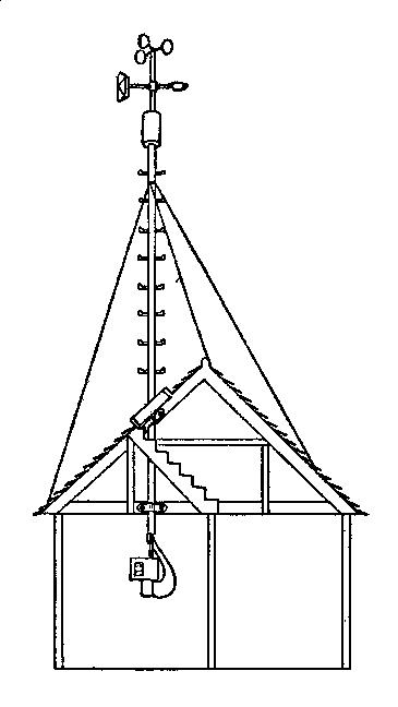 Naprava za zapisovanje vseh treh elementov vetra (11) se nahaja v kovinski škatli (sl. 79), ki ima na zgornji strani priključke za zvezo s sprejemniki na strehi postaje. Smer vetra se mehanično prenaša s krila po navpični palici (4) na mehanizem v škatli, ki nosi kovinski trak s tremi peresi za zapisovanje. Eno pero, odvisno od smeri, se vedno dotika diagrama, medtem ko sta drugi dve odmaknjeni.