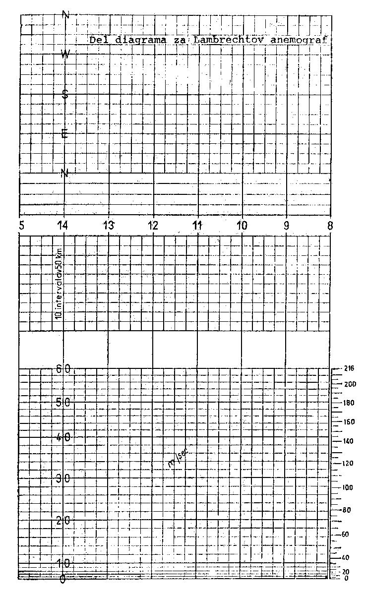 V obeh listih so podtki z instrumentov pri rzaličnih hitrostih vetra vrisani s temno črto na milimetrsko podlago.