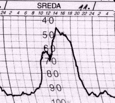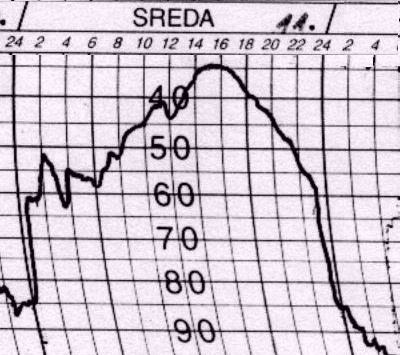 praktično na nič. V preglednici so le polurna povprečja. Za primerjavo, normalno pošlje Sonce na vrh