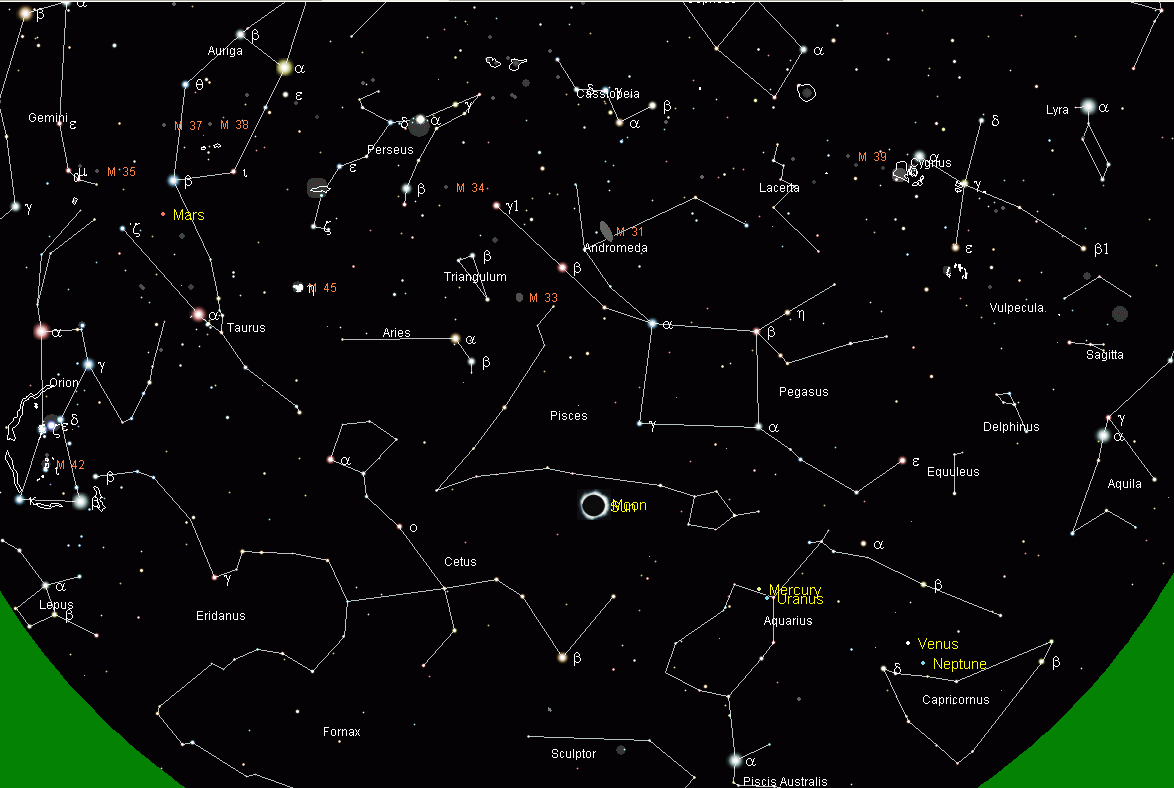 Prikaz vidnega neba med Sončevim mrkom: 29.03.2006. (narejeno s program: Sky Charts - Cartes du Ciel). Zorko Vičar