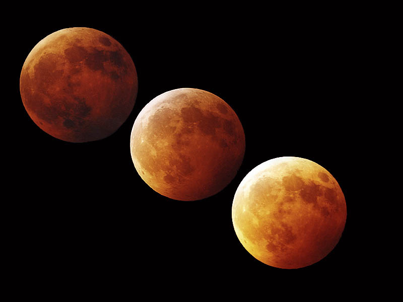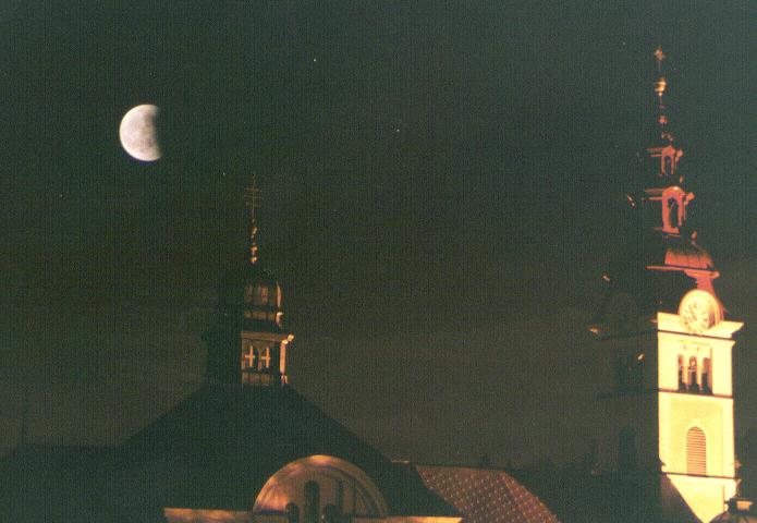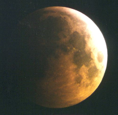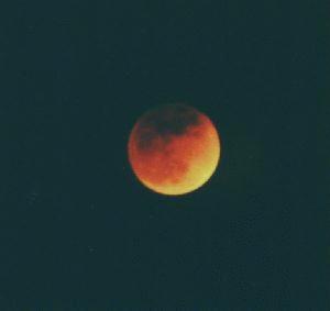 rdeča barva Lune. Posnetek je 21. januarja 2000 (okrog pete ure)