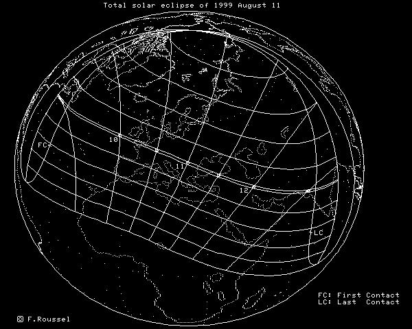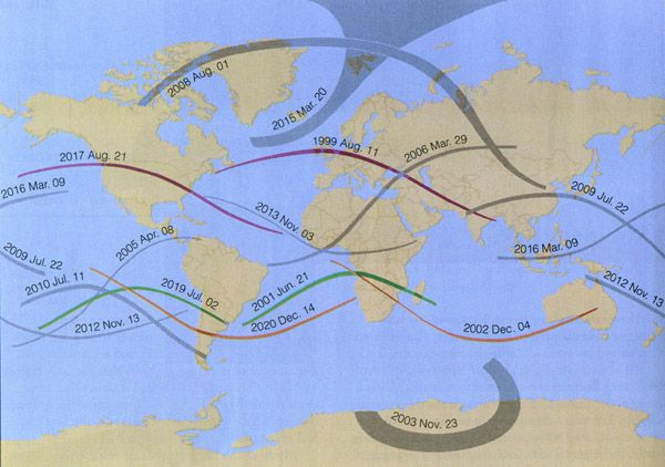 Karta Sončevih mrkov za obdobje 1999 - 2020,