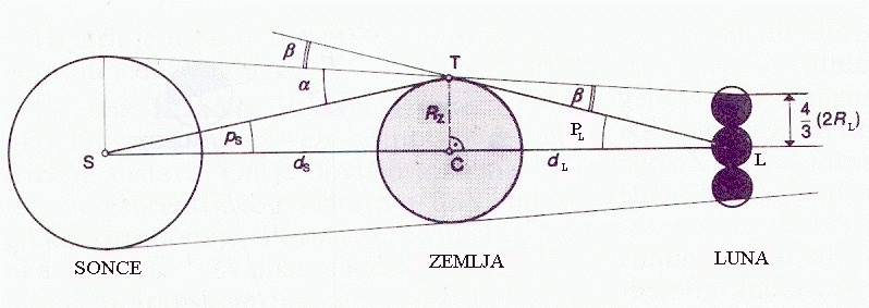Podatki za antiko in današnji podatki: Antika Današnja vrednost Rz=6247 km Rz=6378 km Rl=3/11Rz=1700 km Rl=1738 km dl=62*Rz=387000 km dl=384400 km (razdalja med Luno in Zemljo)