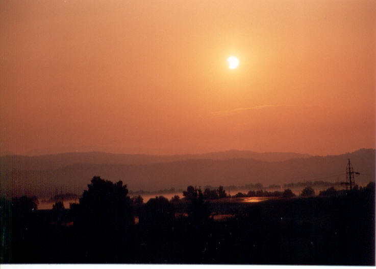 mrk 10. maja 1994. Sonce je kmalu po začetku mrka zašlo.