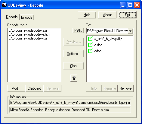 c:\posta>uudecode ime.uue dobimo spet binarni fajl ime.a