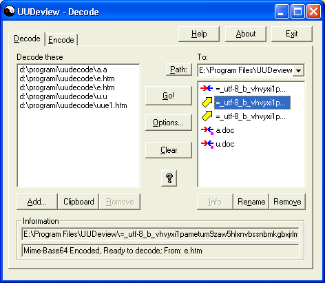 uudeview is recommended for UU/B64 decoding. It is an excellent Freeware for beginner..