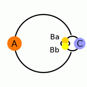 za 34,4 ločne sekunde, tako da ju ločimo že z manjšimi teleskopi