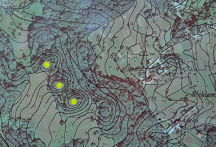 Barvna podlaga je karta dr. Karla Gržana, ČB plast je nekoliko vertikalno skrčena zvezdna karta. |