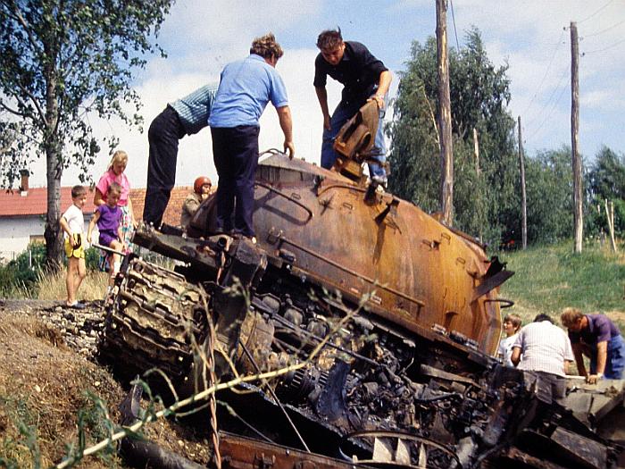 Zgoraj - prizori iz vojne za samostojno Slovenijo leta 1991.