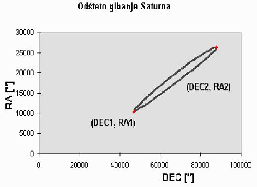 razdalje do mirujočega objekta. Odštejmo torej Saturnovo gibanje od