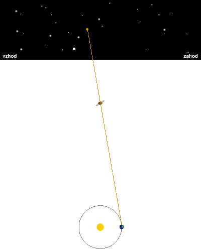 ki ga vidimo z Zemlje. Vanj sta vključena Saturnovo in Zemljino gibanje.