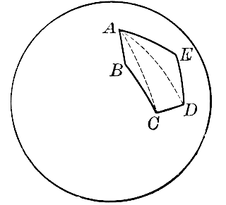 E = sferični je eksces trikotnika (spherical excess of triangle), E = A + B + C - 180