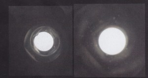 Zgoraj: Fotografiji najmočnejših odbojev na obeh daljnogledih. Levo AP-70, desno 00-80.