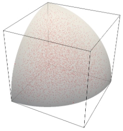 Vse random točke (vsi kliki) so v kvadratu 1x1, N = 0 Iz volumna krogle pa velja za random točke porazdeljene po prostoru: