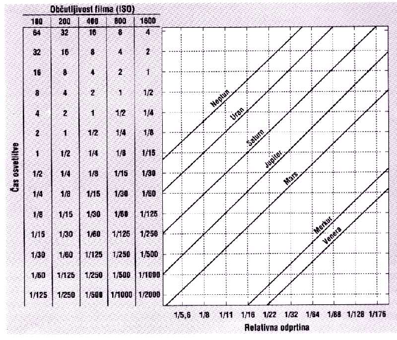 s sledečimi vrednostmi: 2,8 4 5,6 8 11 16. Če bomo opazovali šibke objekte