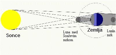 Ponovimo zgodbo pri legi Lune, Zemlje, oddaljenih zvezd in Sonca ob ponovitvi mrka.