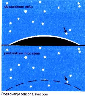 Sonca odkloni curek svetlobe z zvezde. Pri popolnem Sončevem