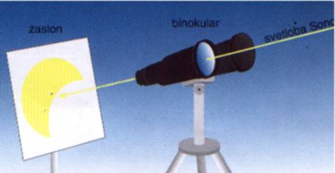 Primer ročne projekcije mrka 1999 z binokularjem.
