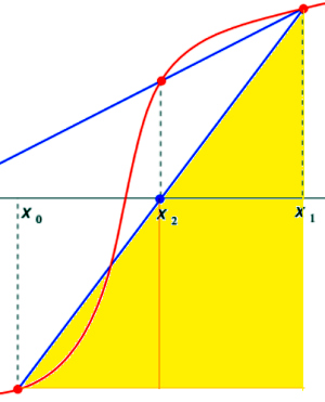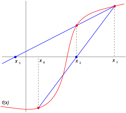 x2 = x0 - f(x0)(x1 - x0)/(f(x1) - f(x0))