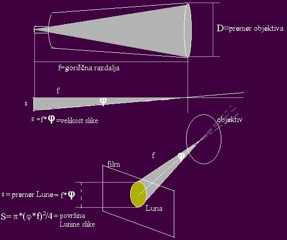 teleskopa (objektiva), zaslonka pa je razmerje med goriščem in