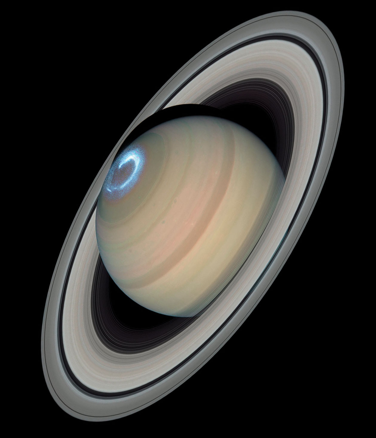 Saturn s pojavom polarnega sija – posnel teleskop Hubble.