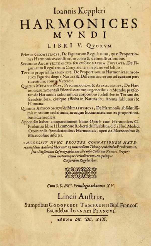 Harmonices Mundi [Harmonija (ubranost) sveta], tiskana 1619,