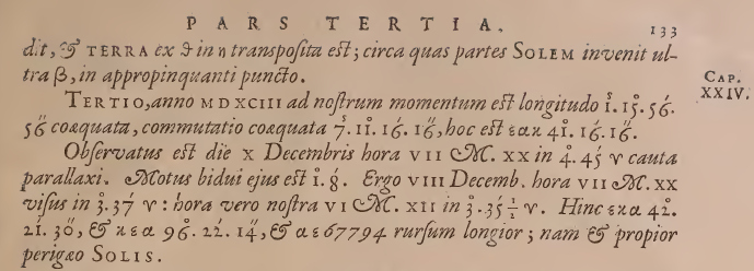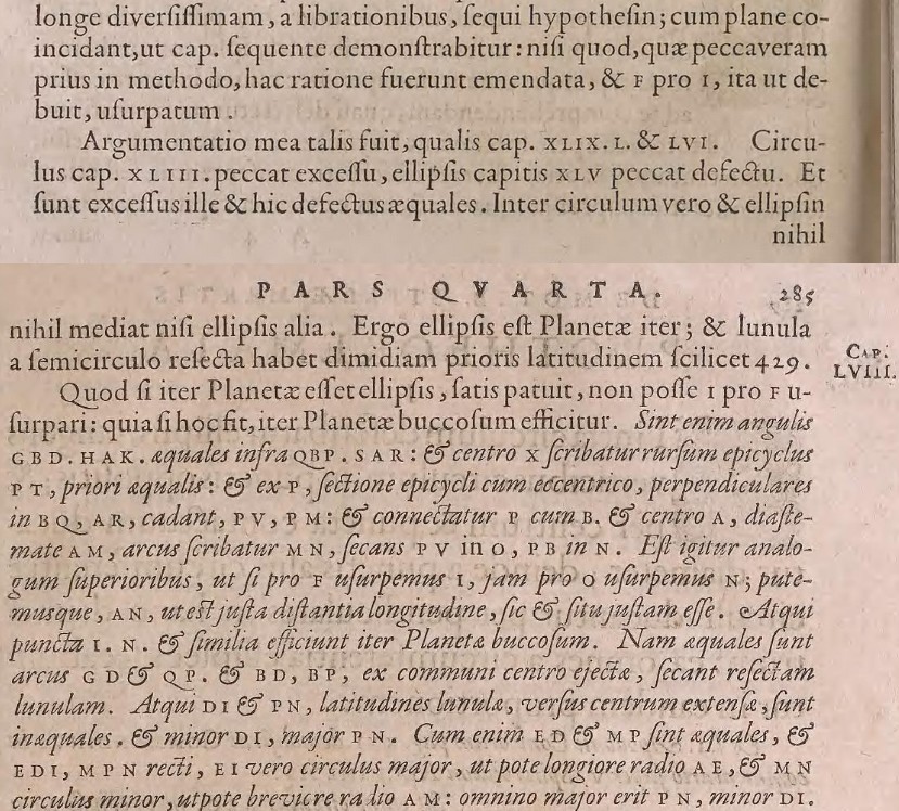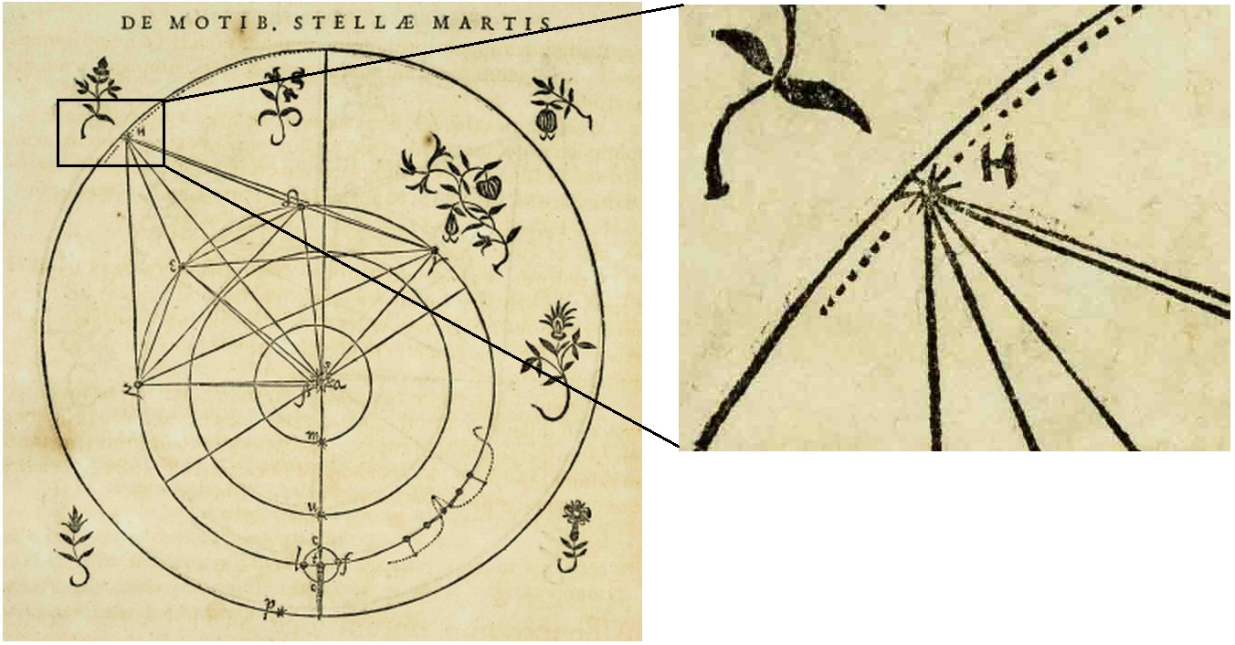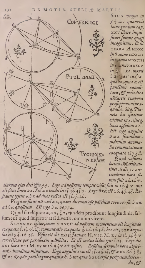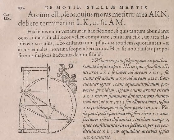 »Astronomia nova« - iz leta 1609, Stran 149, poglavje XXVII – odstopanje tirnice Marsa od krožnice.