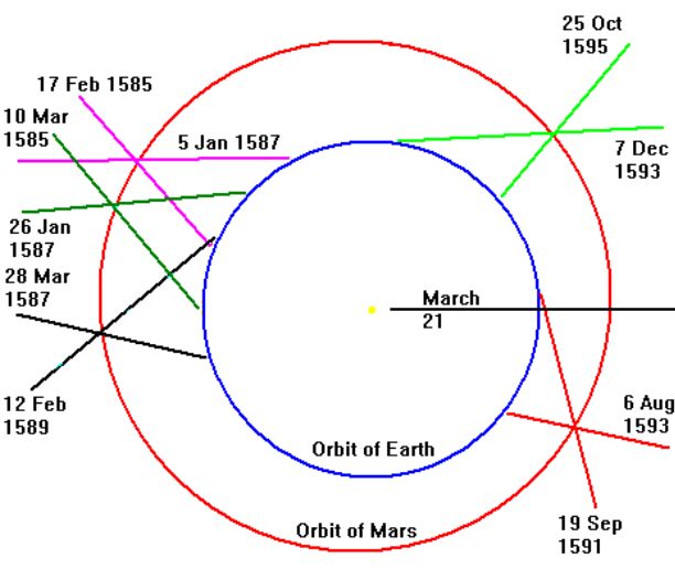so točke na orbiti Marsa. Če je pri Zemlji imel Kepler še dileme o obliki