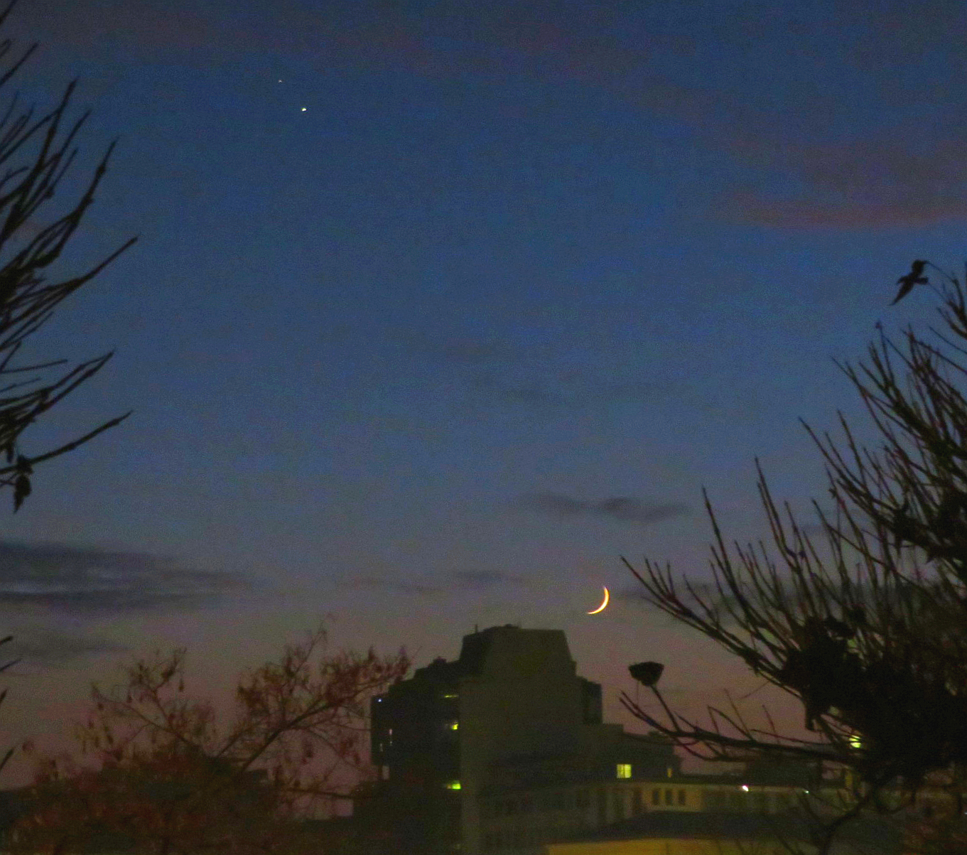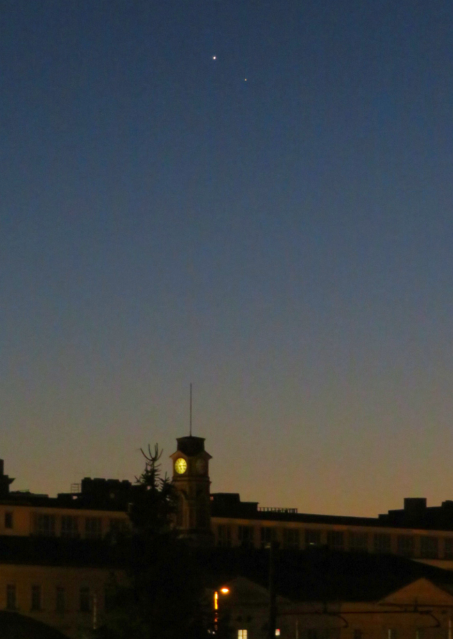 14 ° in konjunkcija se je dogajala zgodaj zjutraj, le nekaj stopinj nad obzorjem –