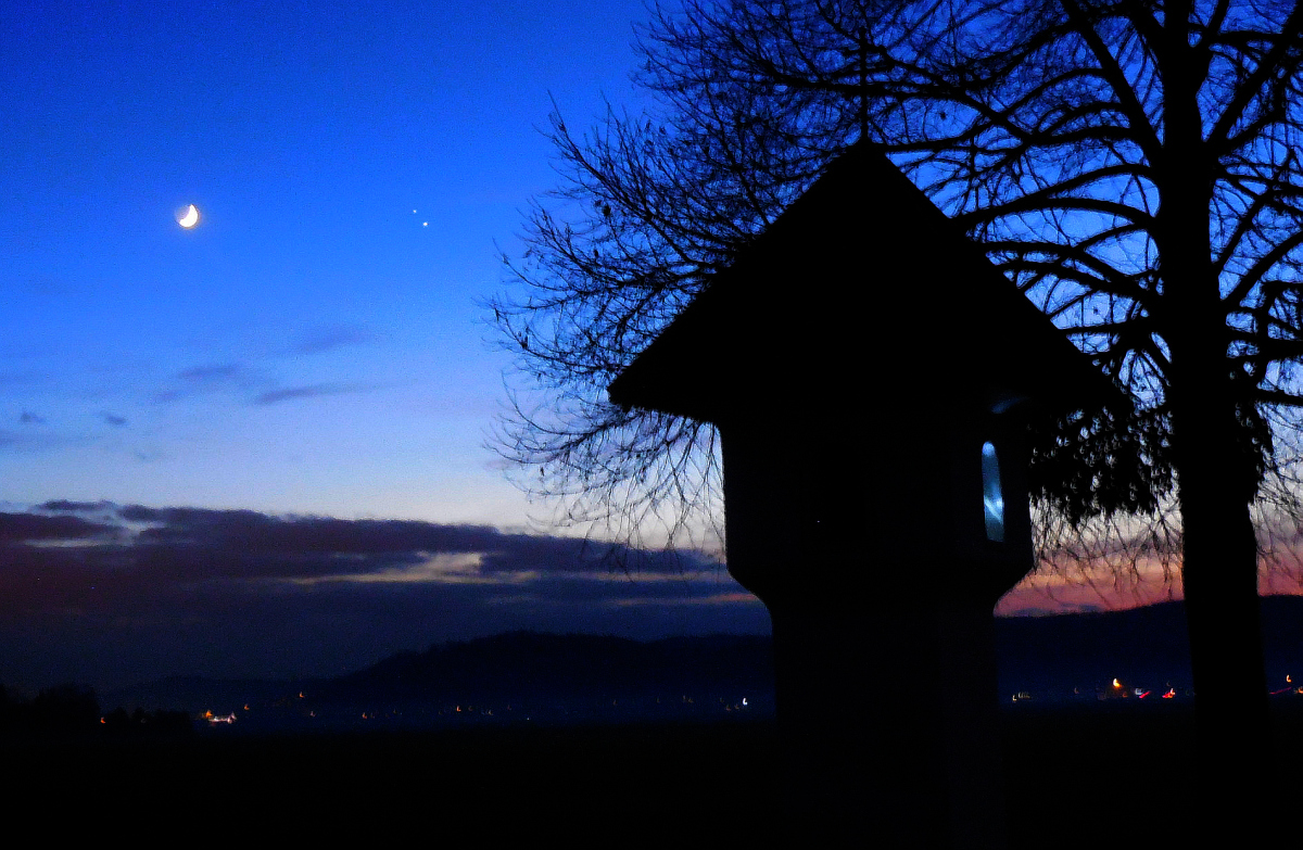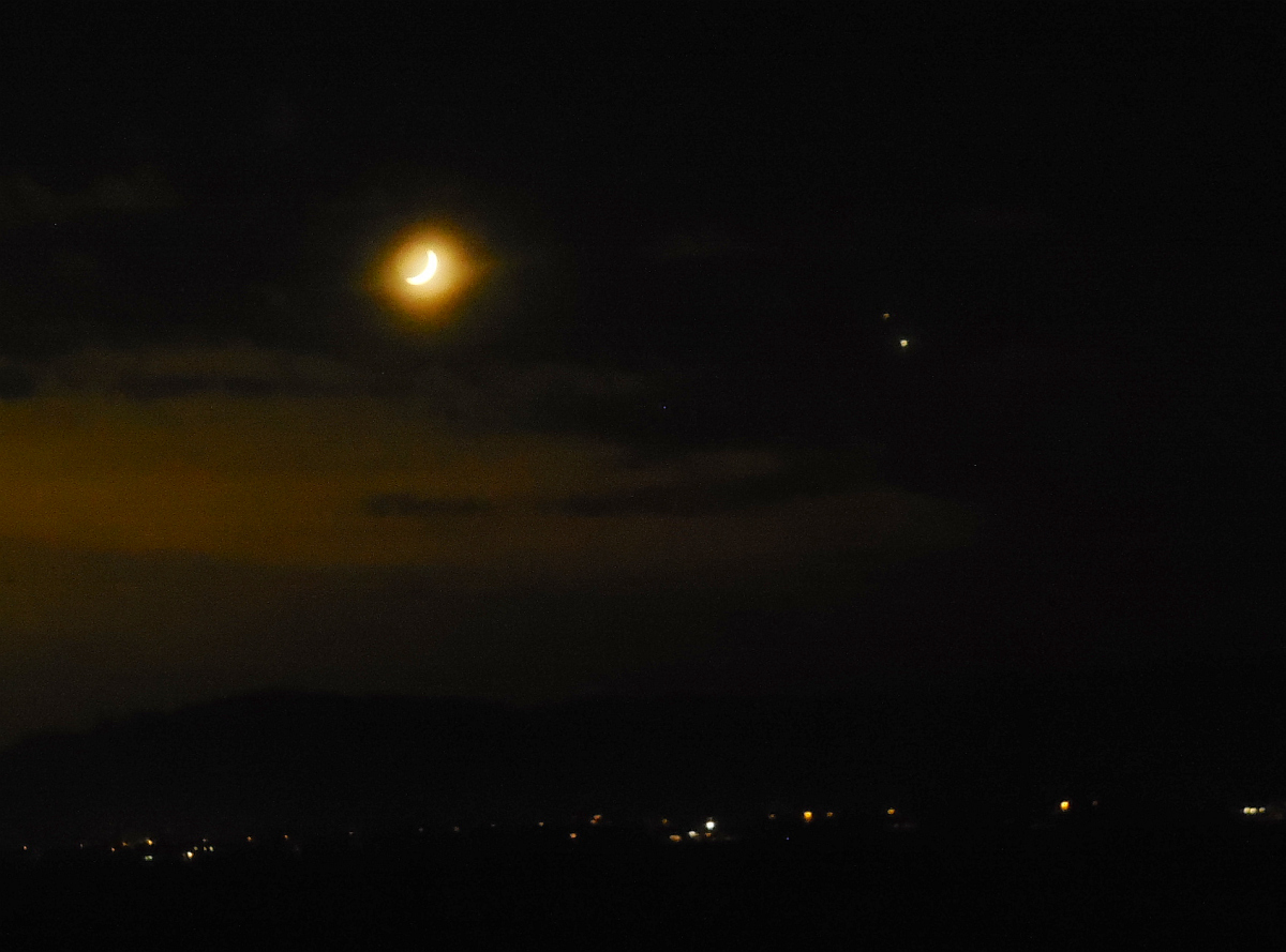 planeta oddaljena pod pol stopinje, s čudovito kuliso mlade Lune na isti