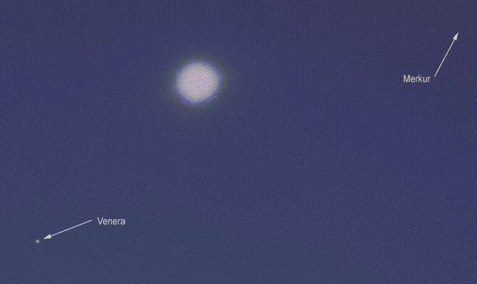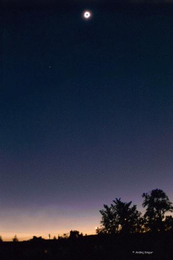 Venera in Merkur sta zasijala na nebu med popolno fazo Sončevega mrka,