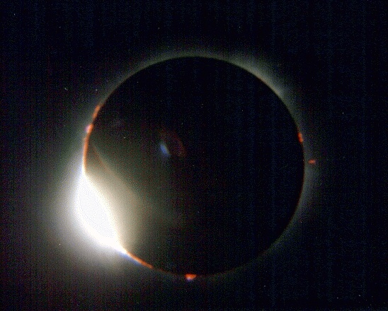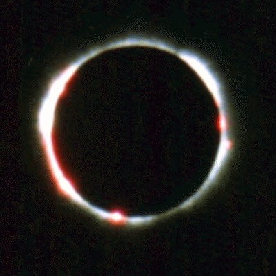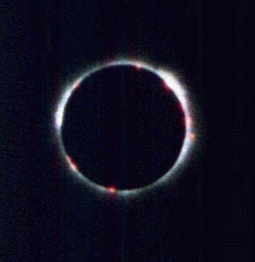 Pri vseh treh zgornjih Petrovih fotografijah Sončevega mrka 11.8. 1999, presenečajo
