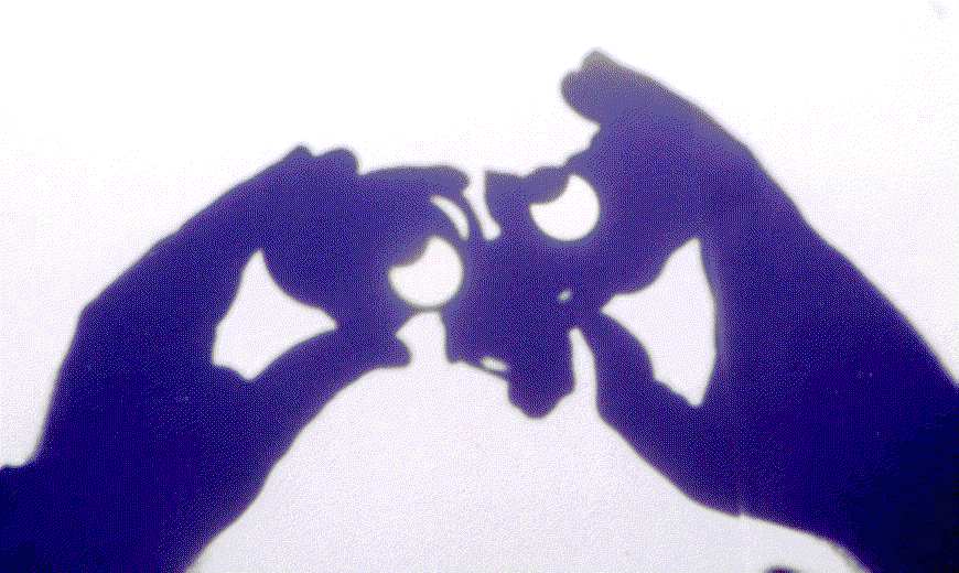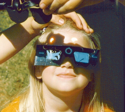 Igranje s projekcijo mrka z daljnogledom med čakanjem na popolno fazo. Projekcijo