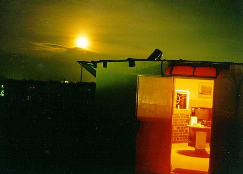 Slika 3. Posnetek Lune s pomočjo okularne projekcije. Na posnetku se lepo vidi Zaliv mavric. Posneli člani Univerze za tretje življenjsko obdobje 1. februarja 1996 na diafilm Kodak Elite 100, čas: 0,25 s.