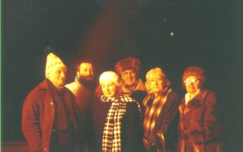 Slika 2. Na sliki so najbolj vztrajni člani Univerze za tretje življenjsko obdobje, ki se tudi hudega mraza ne ustrašijo. Svetla pika desno nad udeleženci je planet Venera.